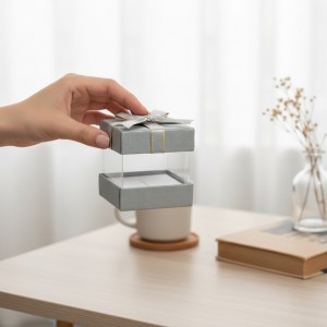 Cutiuta este realizata din carton si plastic transparent.