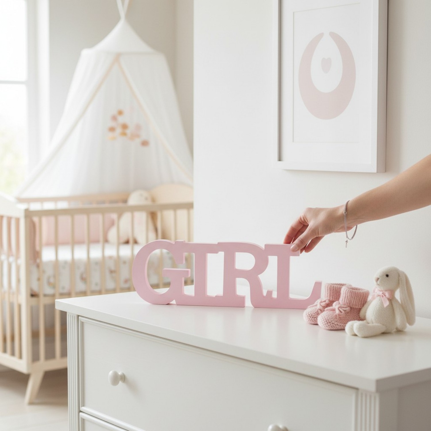 Daca esti nasa de botez sau ai printre prieteni un cuplu care isi va boteza in curand fetita, alege o decoratiune moderna, cum sunt literele Girl realizate din PVC si vopsite in roz.