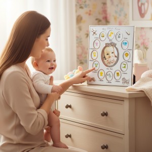 scrisa in limba engleza My First Year (primul meu an), iar lunile sunt marcate prin cifre si cuvinte tot in limba engleza.