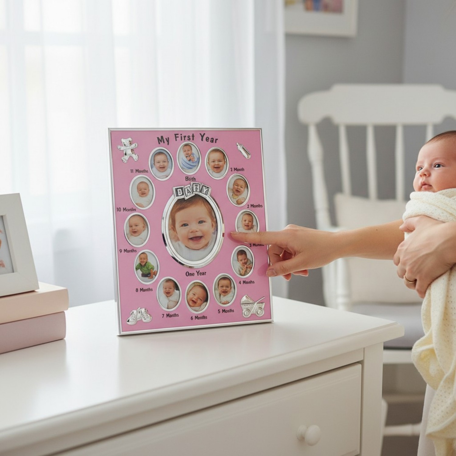 Pentru ca prima aniversare din viata unui copil reprezinta un moment special pentru parintii sai, o rama foto cu ajutorul careia poti trece in revista fiecare luna din viata bebelusului tau reprezinta o amintire de neuitat.