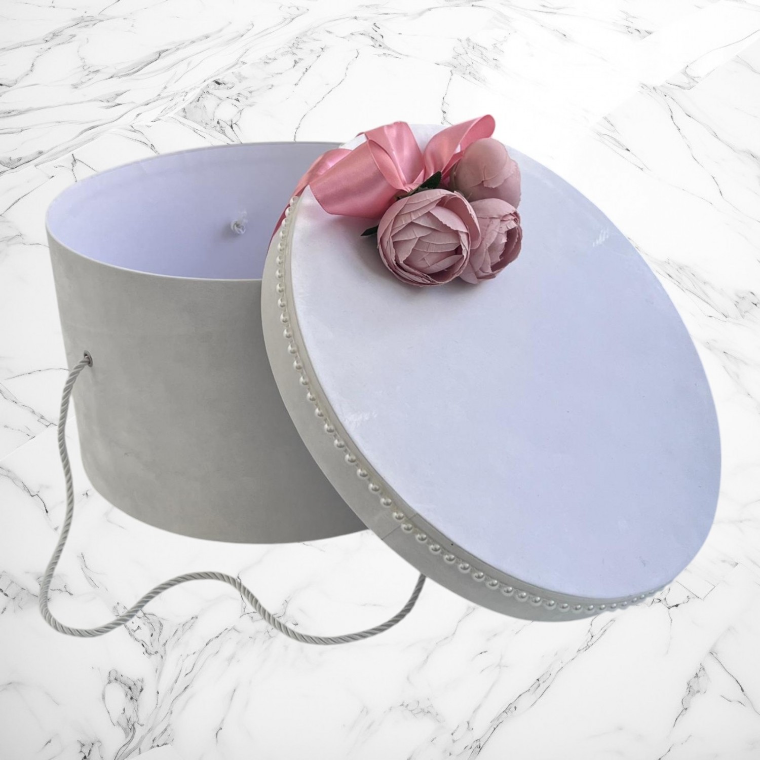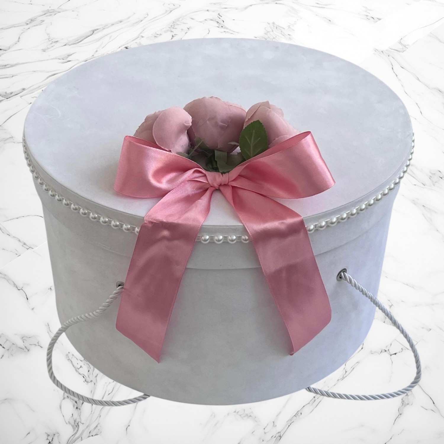 Comanda acum produsul "Cutie hainute pentru botez bujor si fundita roz pudra".