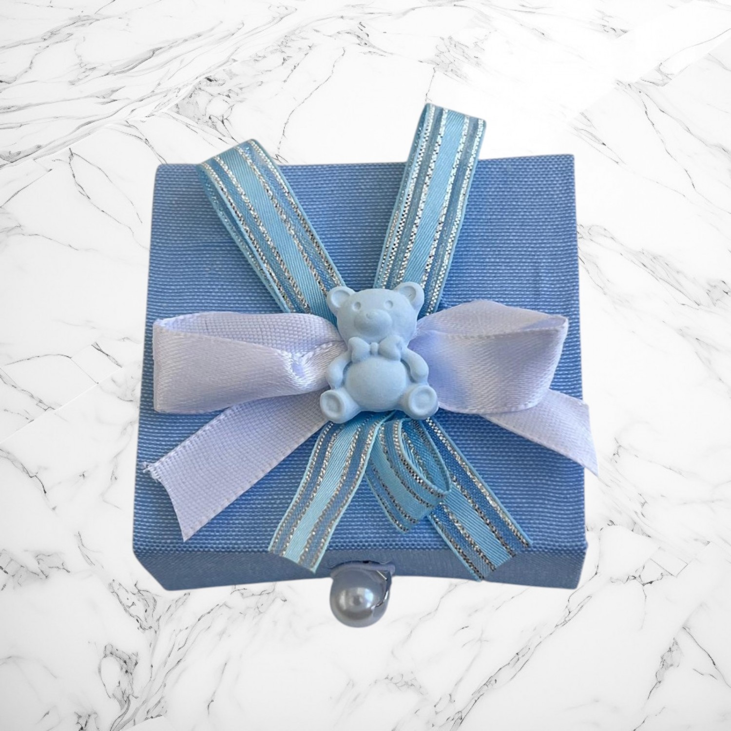 Transformă primul tuns al bebelușului într-o amintire de neuitat! Această cutiuță elegantă pentru moț este ideală pentru păstrarea primului fir de păr, fiind și un cadou adorabil pentru botez sau aniversare. Decorată cu o fundiță bleu și un ursuleț simpatic, cutiuța oferă un aer jucăuș și elegant în același timp.