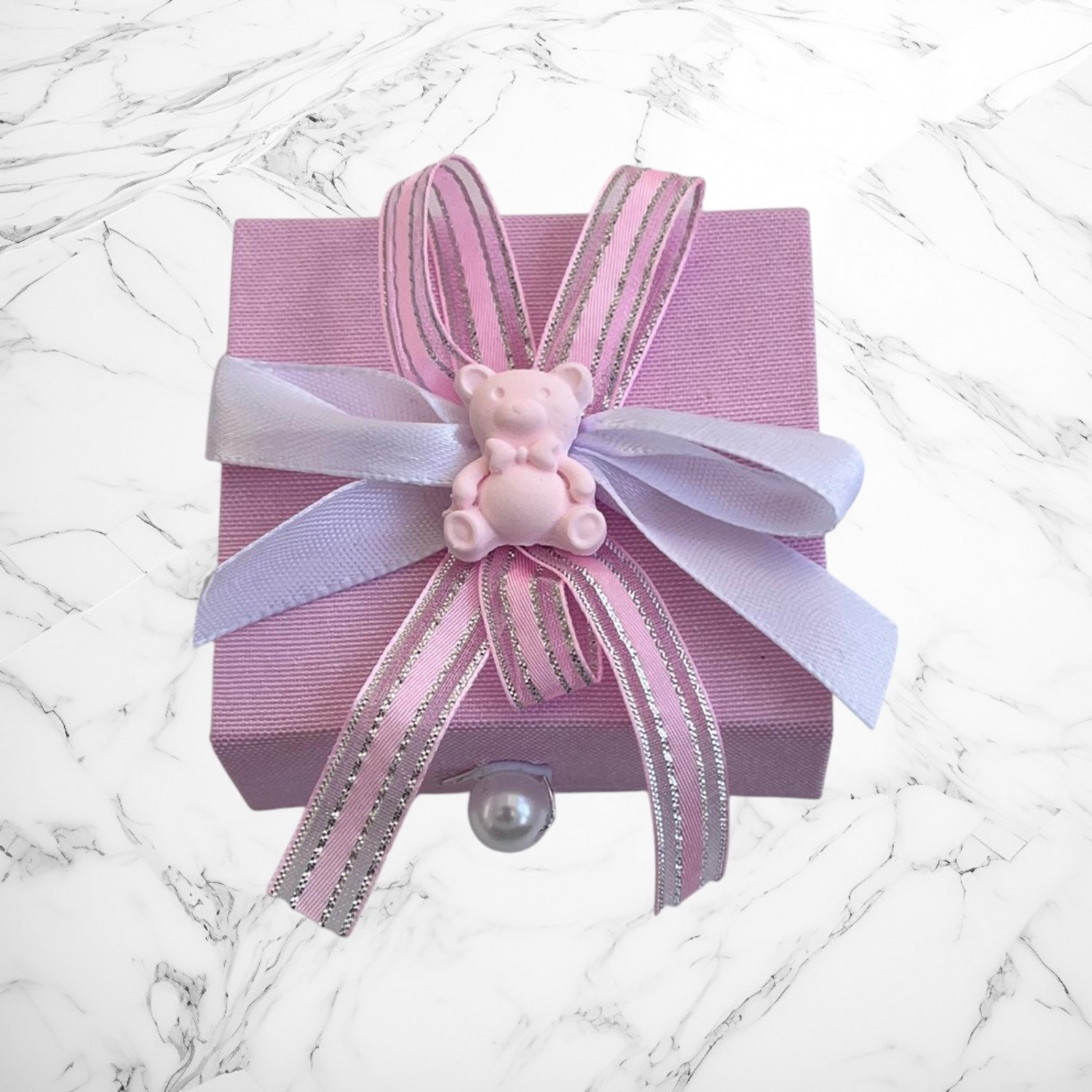 Transformă primul tuns al bebelușului într-o amintire de neuitat! Această cutiuță elegantă pentru moț este ideală pentru păstrarea primului fir de păr, fiind și un cadou adorabil pentru botez sau aniversare. Decorată cu o fundiță roz și un ursuleț simpatic, cutiuța oferă un aer jucăuș și elegant în același timp.