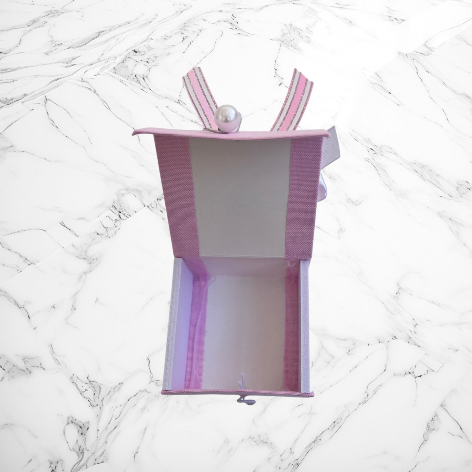 Culoare: roz deschis, cu fundiță albă și roz cu fir argintiu