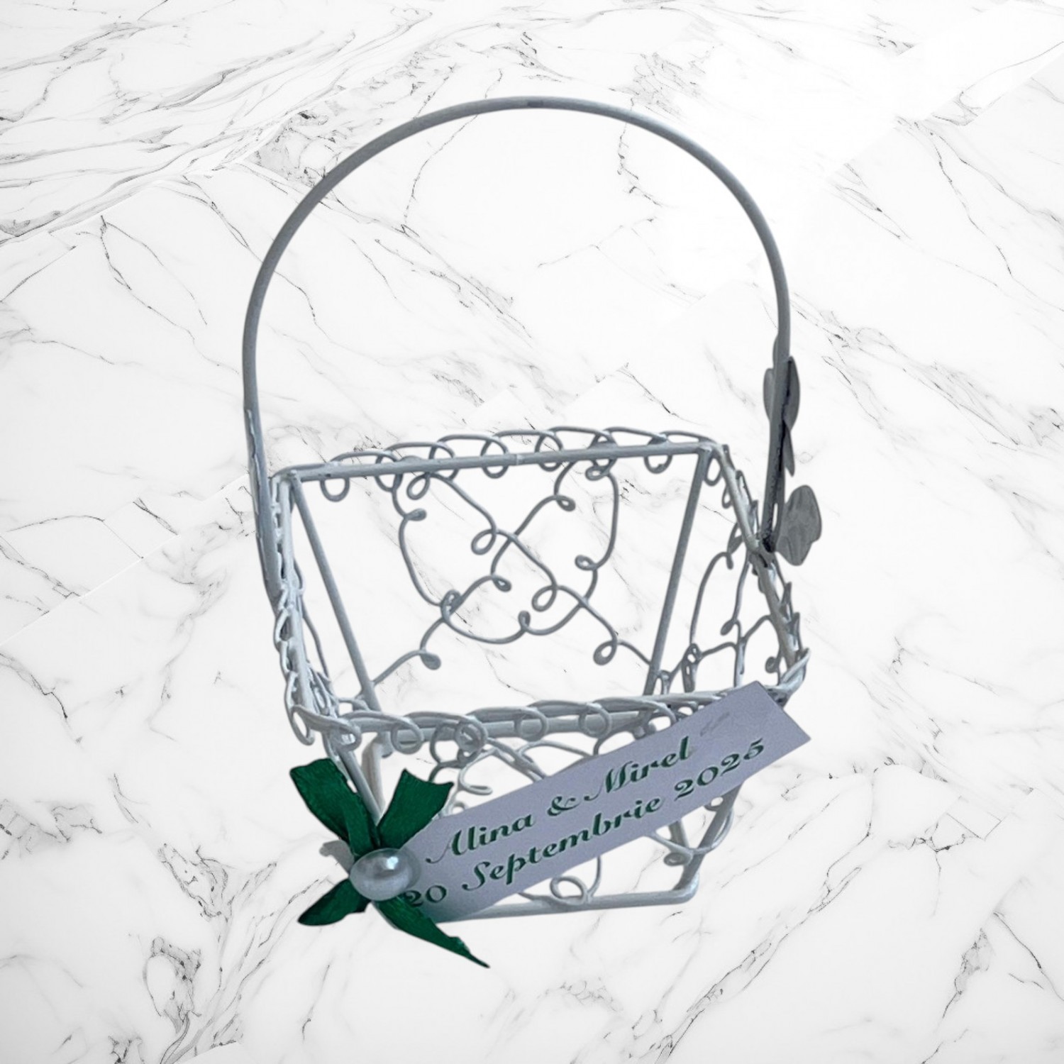 ✔️ Design delicat în formă de coșuleț, realizat din sârmă albă de calitate.