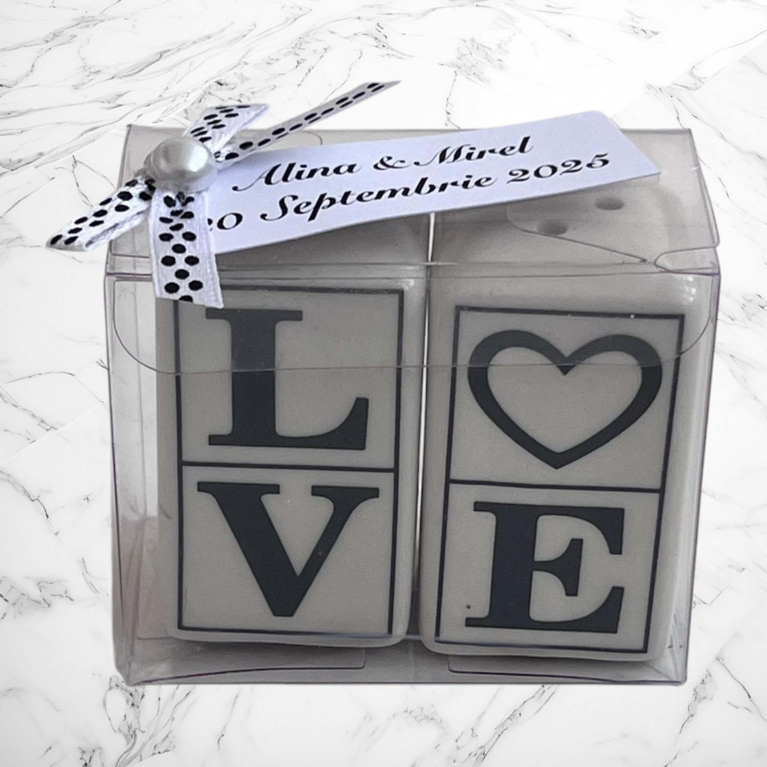Spune-le invitaților “Mulțumim cu dragoste” printr-un cadou original, practic și plin de semnificație! Acest set de solnițe din ceramică scrie LOVE în cel mai dulce mod – perfect pentru o nuntă romantică sau un botez cu tematică elegantă. 💑