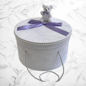 Comanda acum produsul "Set botez lila cu ursuleț – Cutie pentru hăinuțe și lumânare".