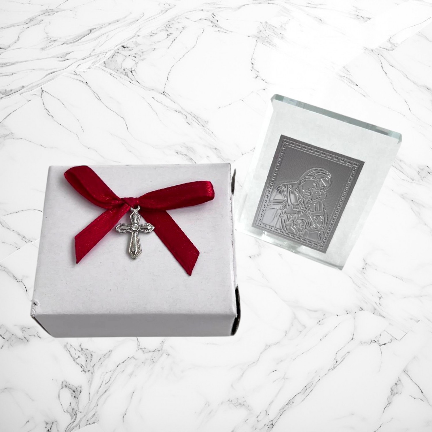 Comanda acum produsul "Set botez Lumânare, Trusou, Cutie hainuțe bujor Cu drag de la nași – grena".