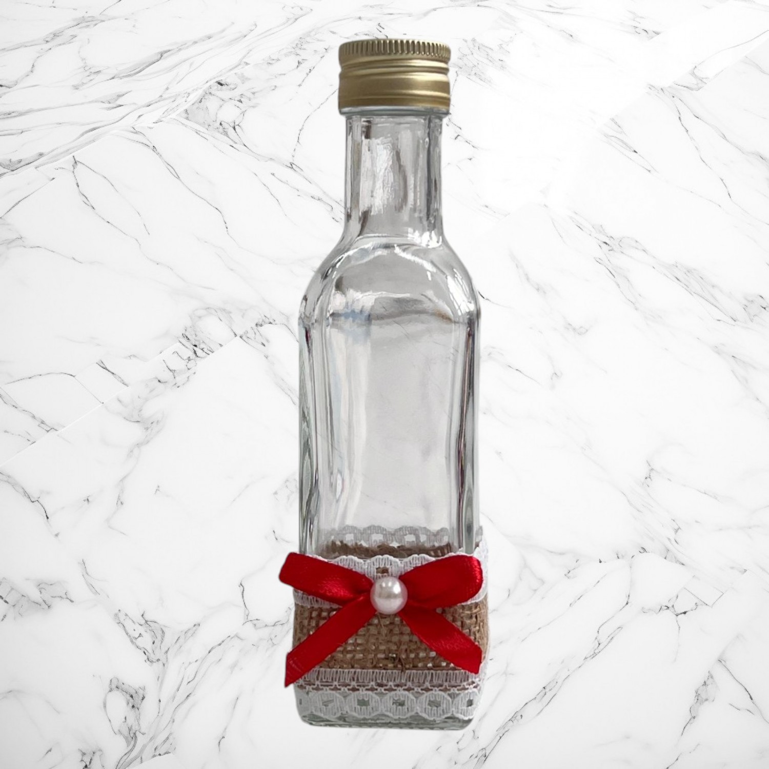 💧 Sticluța pentru mir – îmbrăcată în satin, perfectă pentru uleiul sfințit.